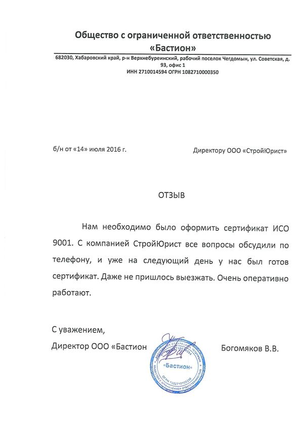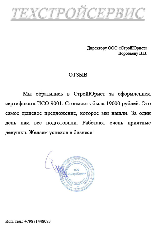 Отзывы клиентов "СтройЮрист" по ISO в Нижнекамске