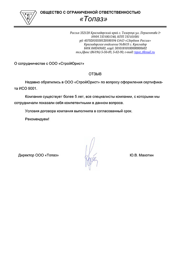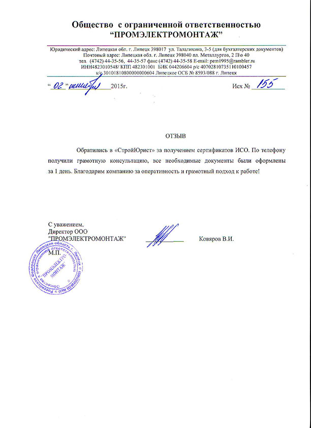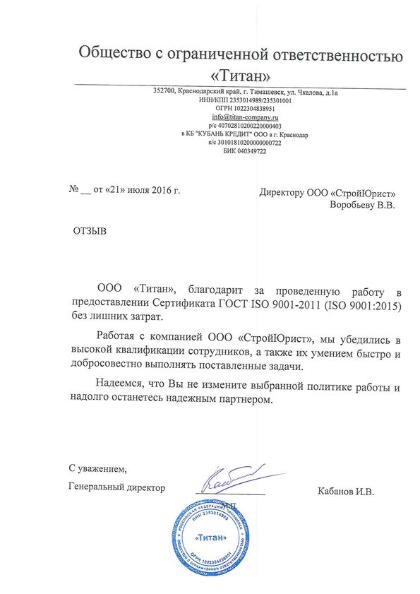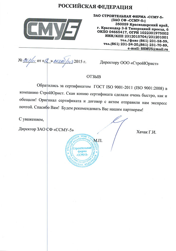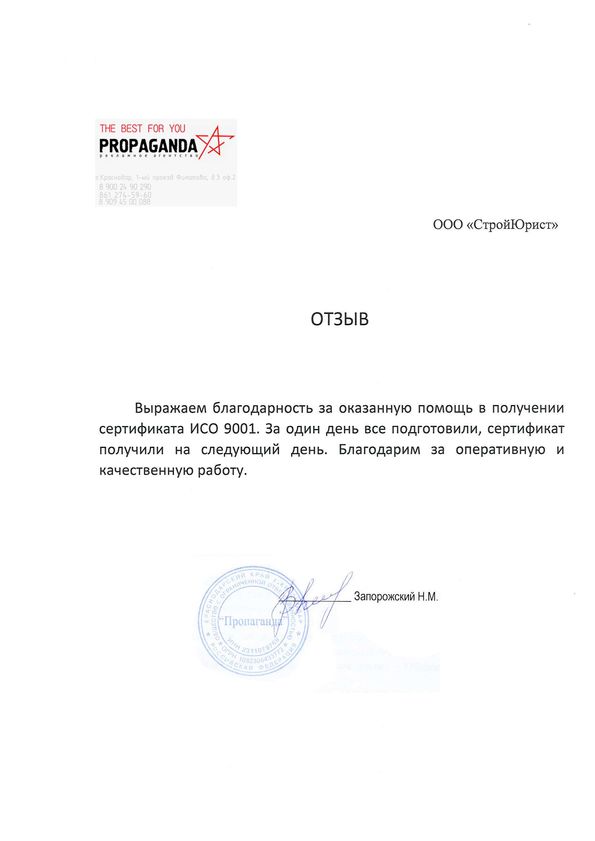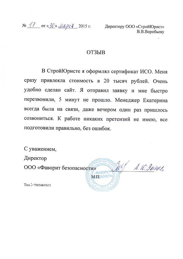 Отзывы клиентов "СтройЮрист" по ISO в Нижнекамске