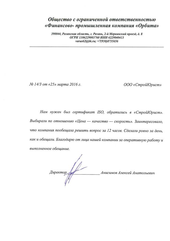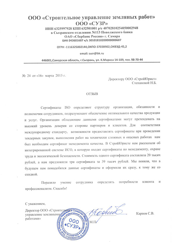 Отзывы клиентов "СтройЮрист" по ISO в Нижнекамске