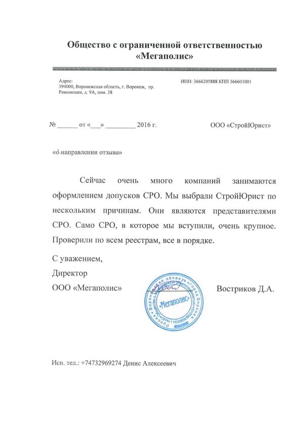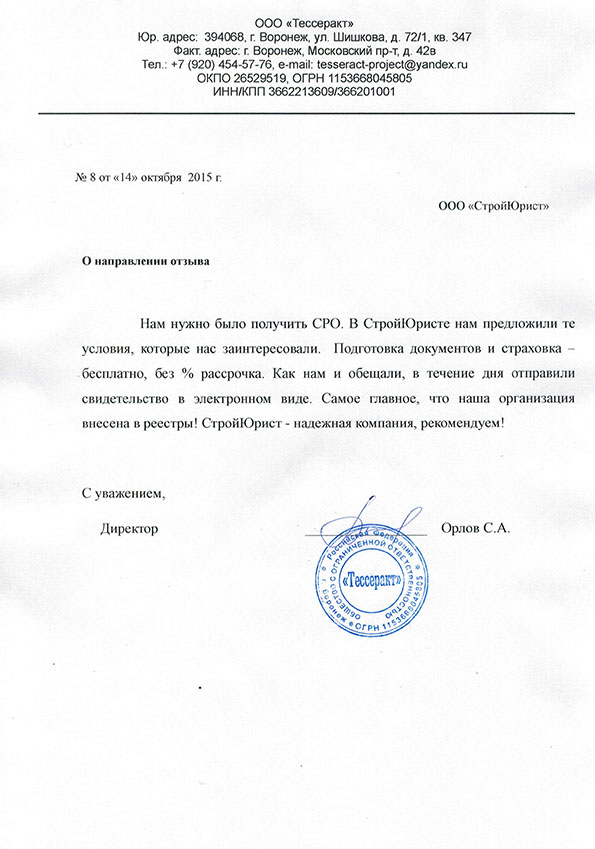 Отзывы клиентов "СтройЮрист" по вступлению в СРО в Нижнекамске