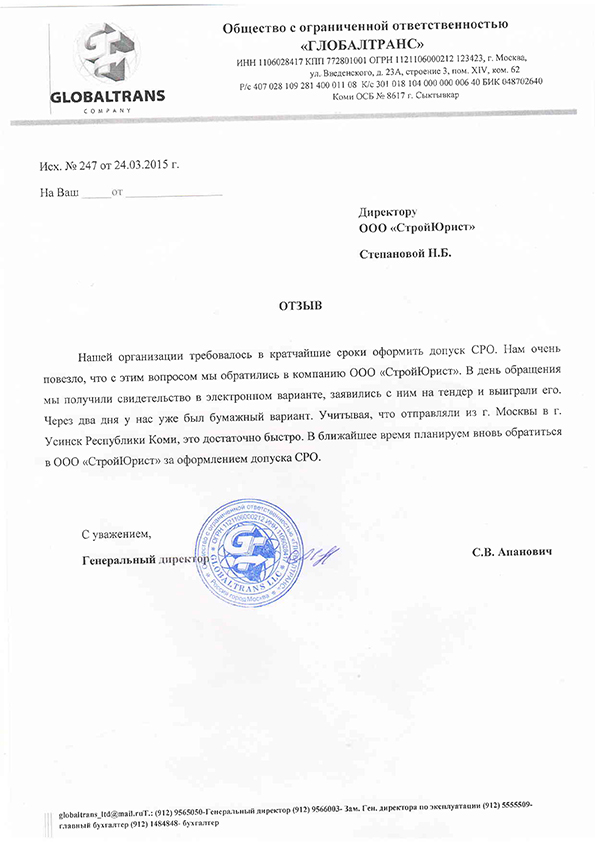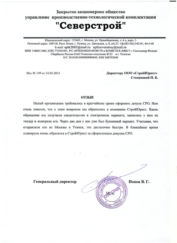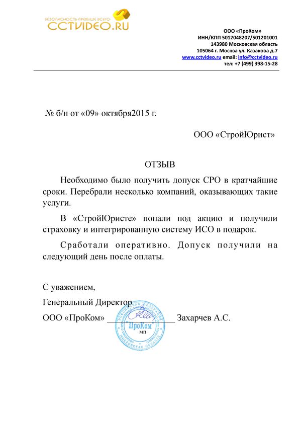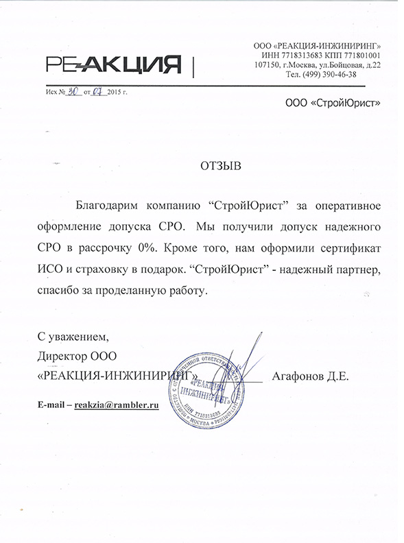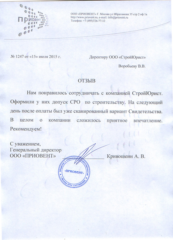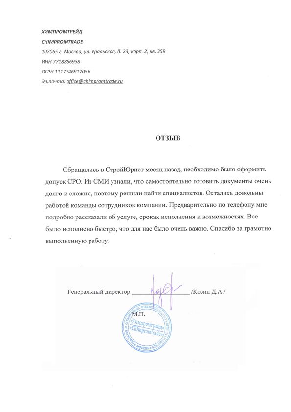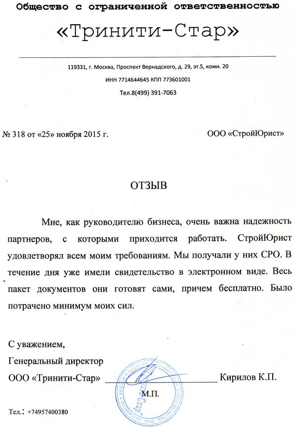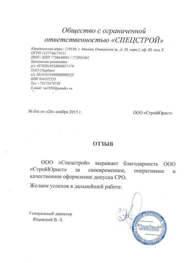 Отзывы клиентов "СтройЮрист" по вступлению в СРО в Нижнекамске