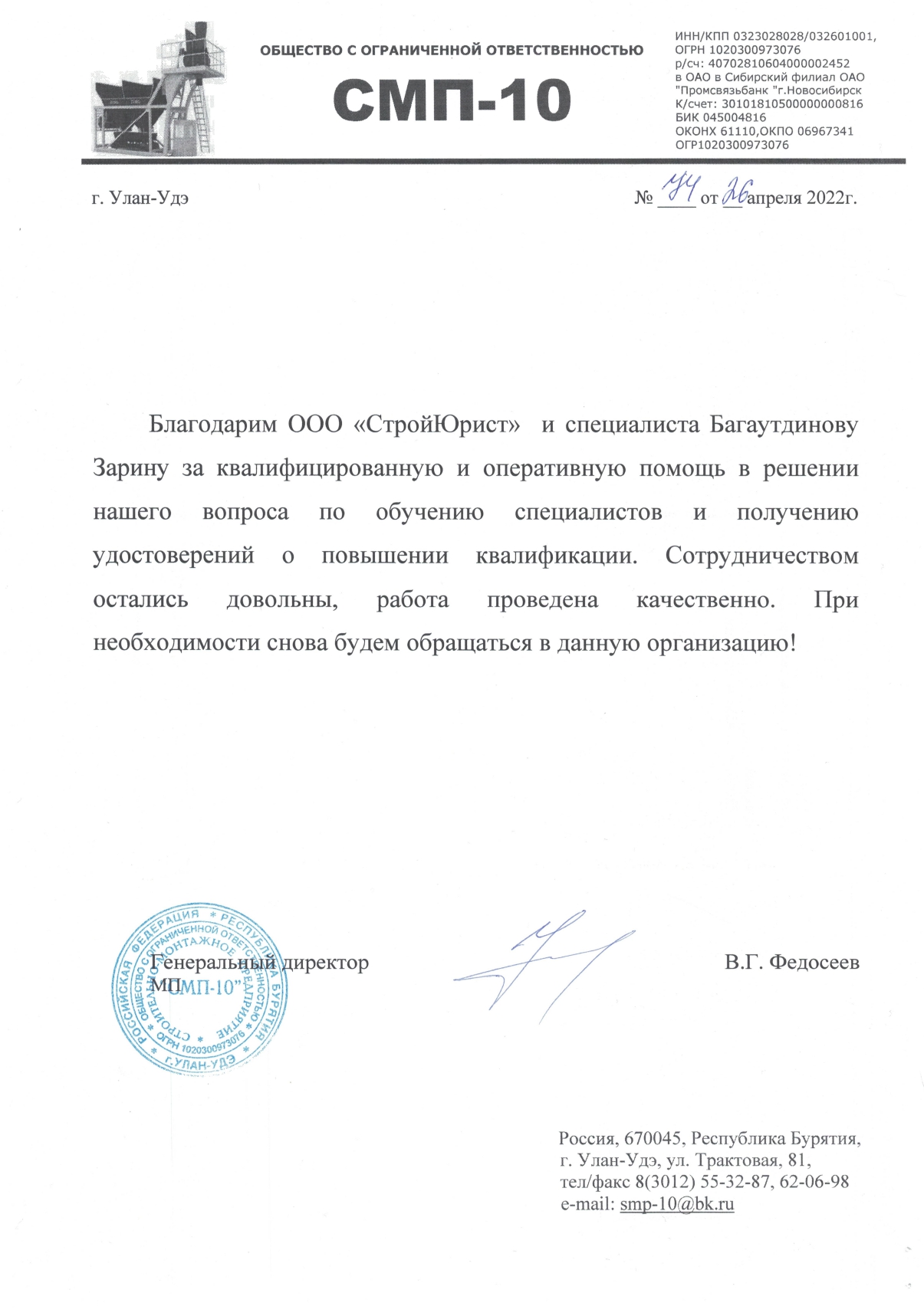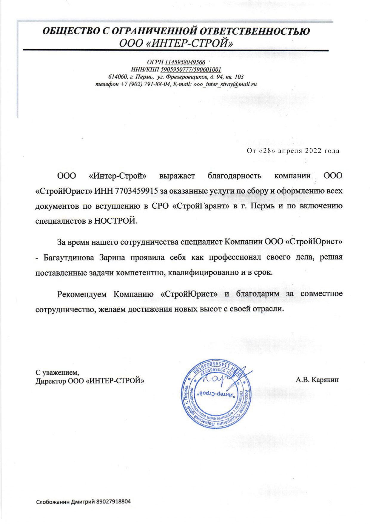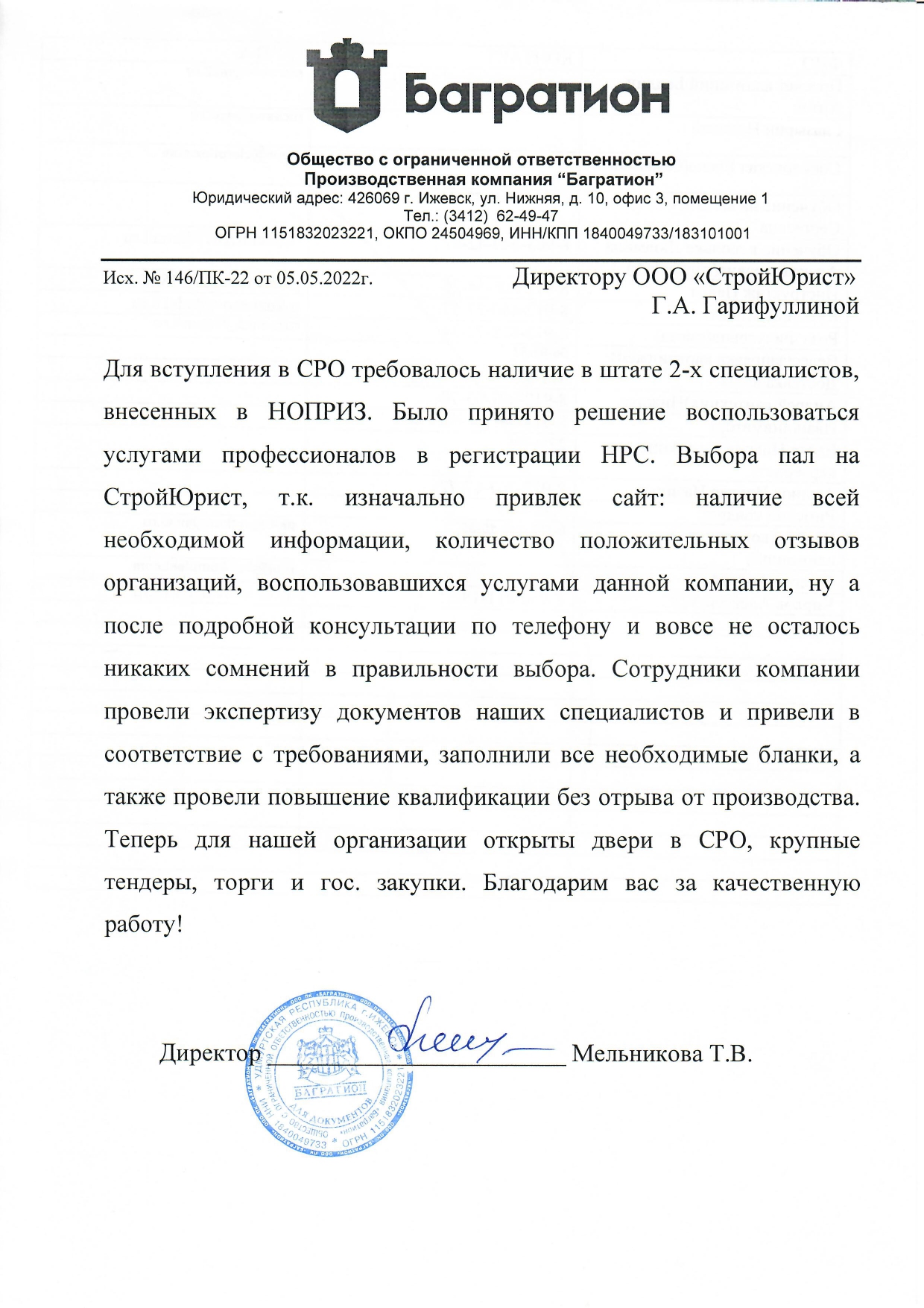 Отзывы клиентов "СтройЮрист" по вступлению в СРО в Нижнекамске