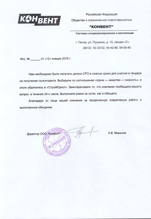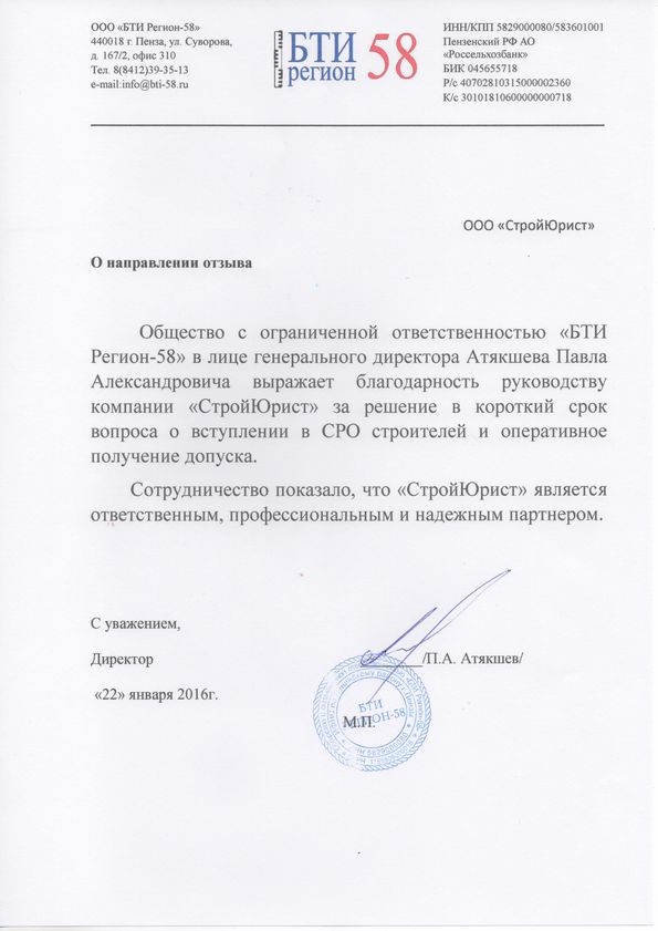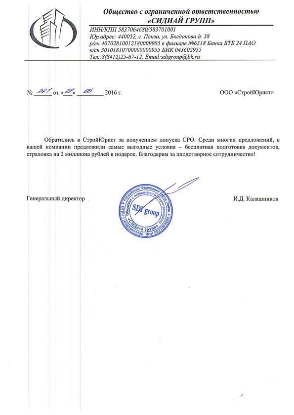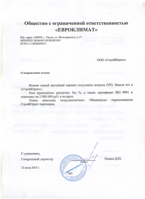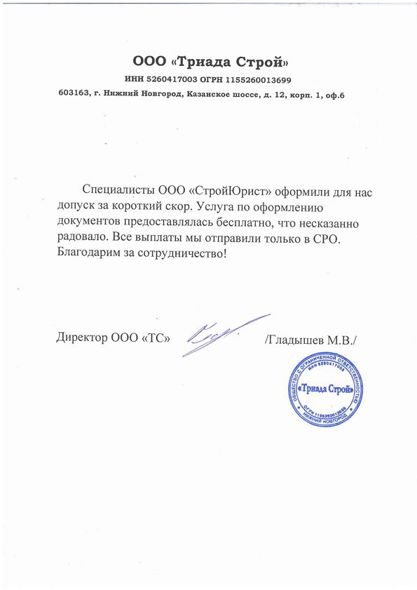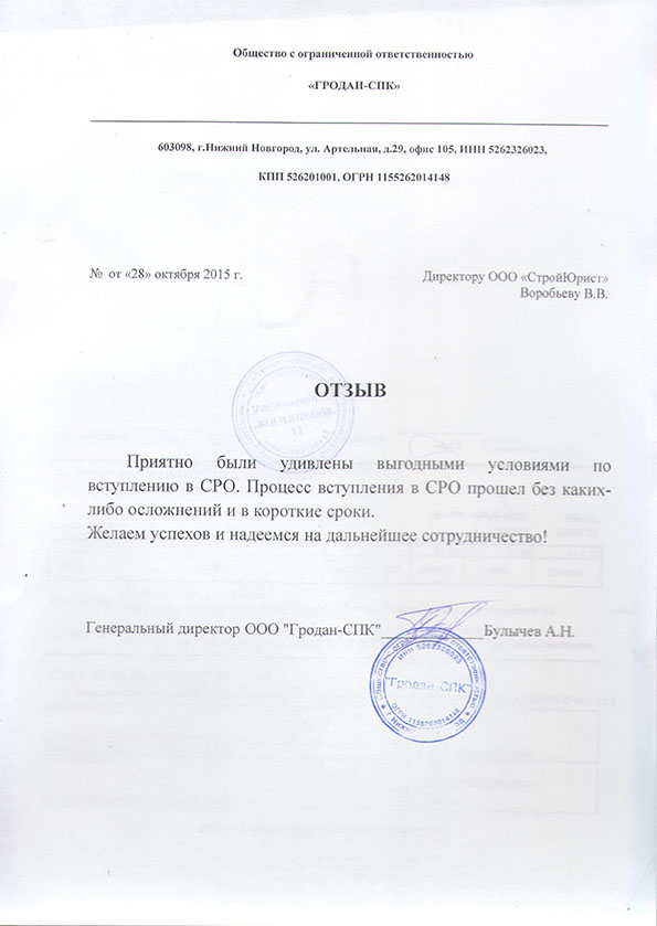 Отзывы клиентов "СтройЮрист" по вступлению в СРО в Нижнекамске