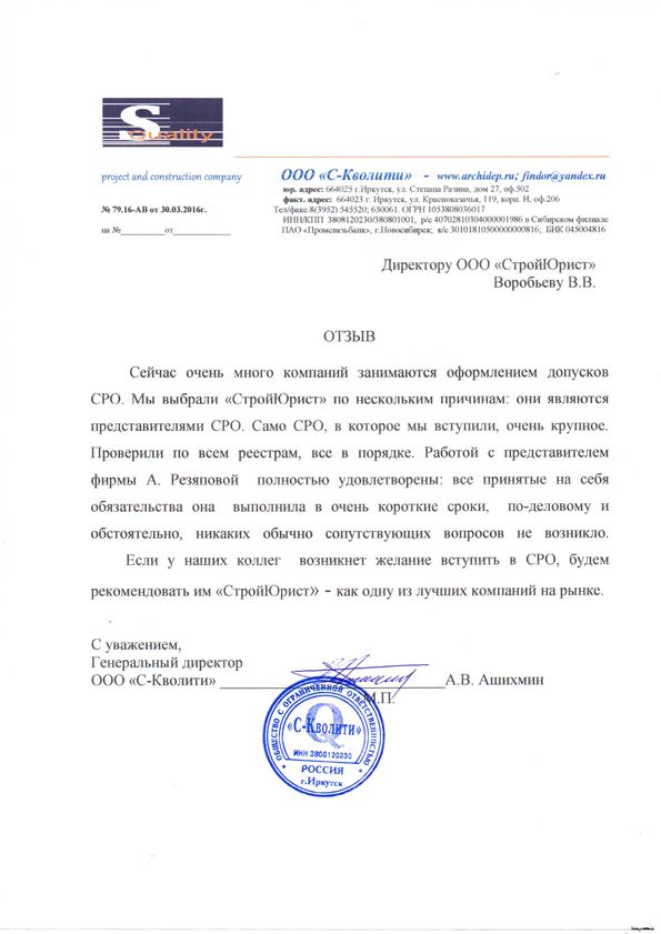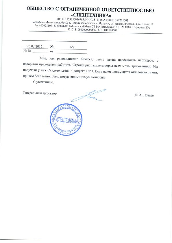 Отзывы клиентов "СтройЮрист" по вступлению в СРО в Нижнекамске