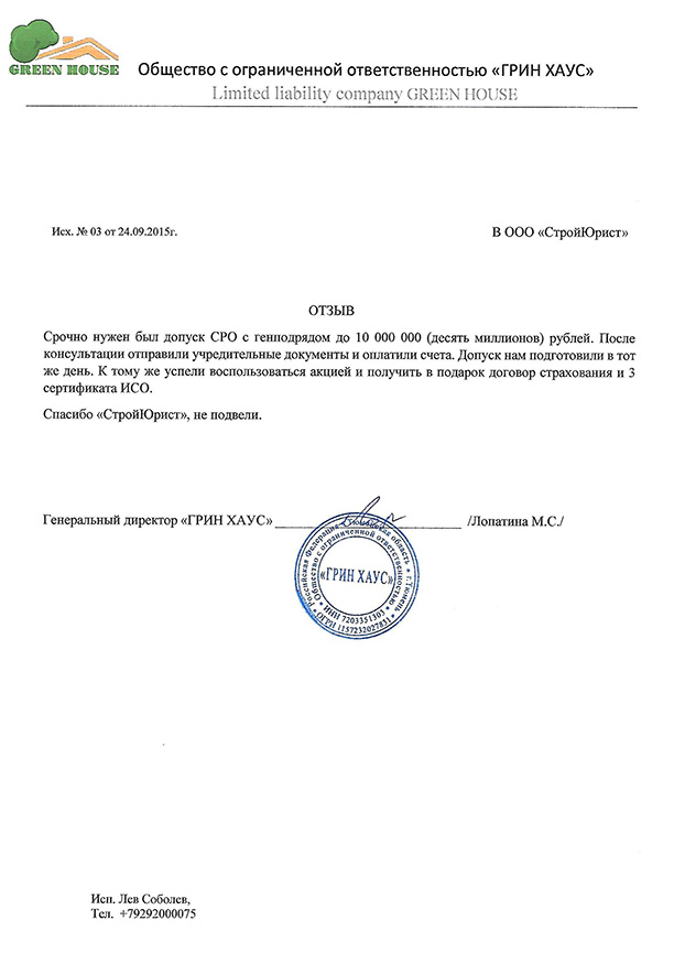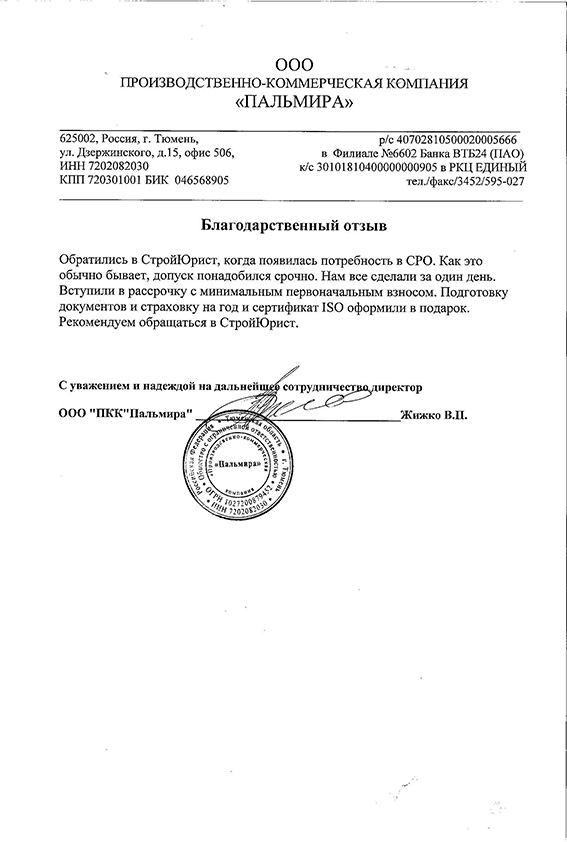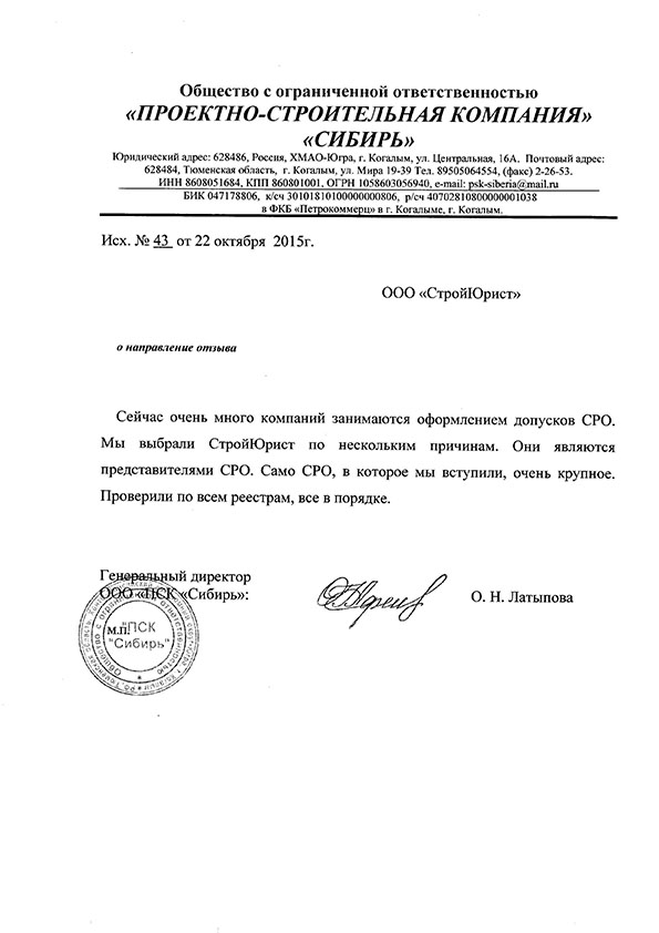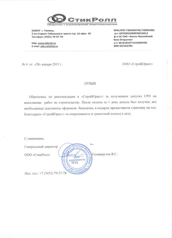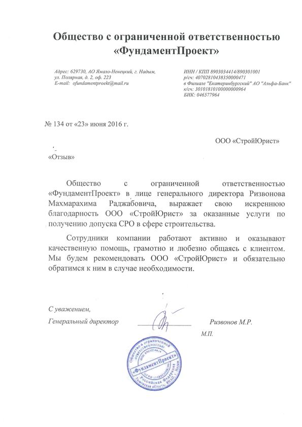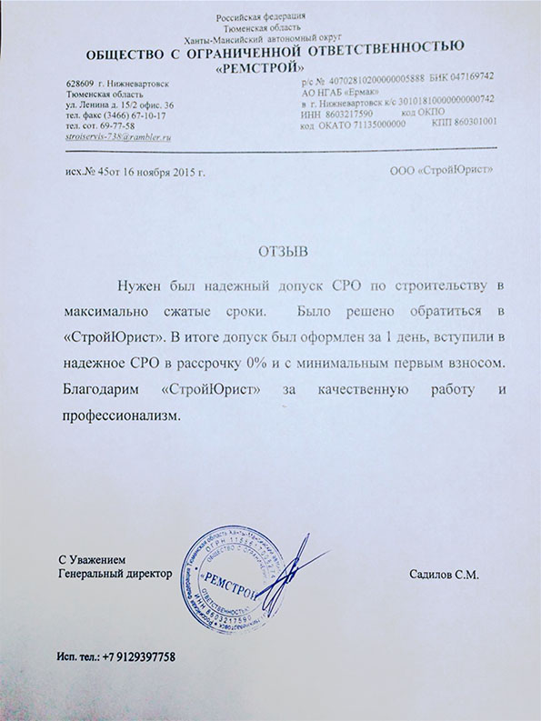 Отзывы клиентов "СтройЮрист" по вступлению в СРО в Нижнекамске
