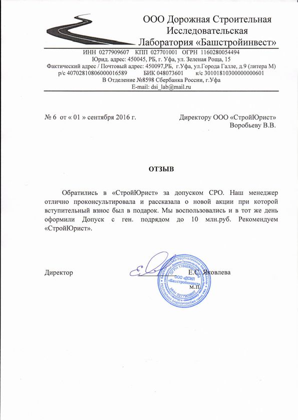 Отзывы клиентов "СтройЮрист" по вступлению в СРО в Нижнекамске